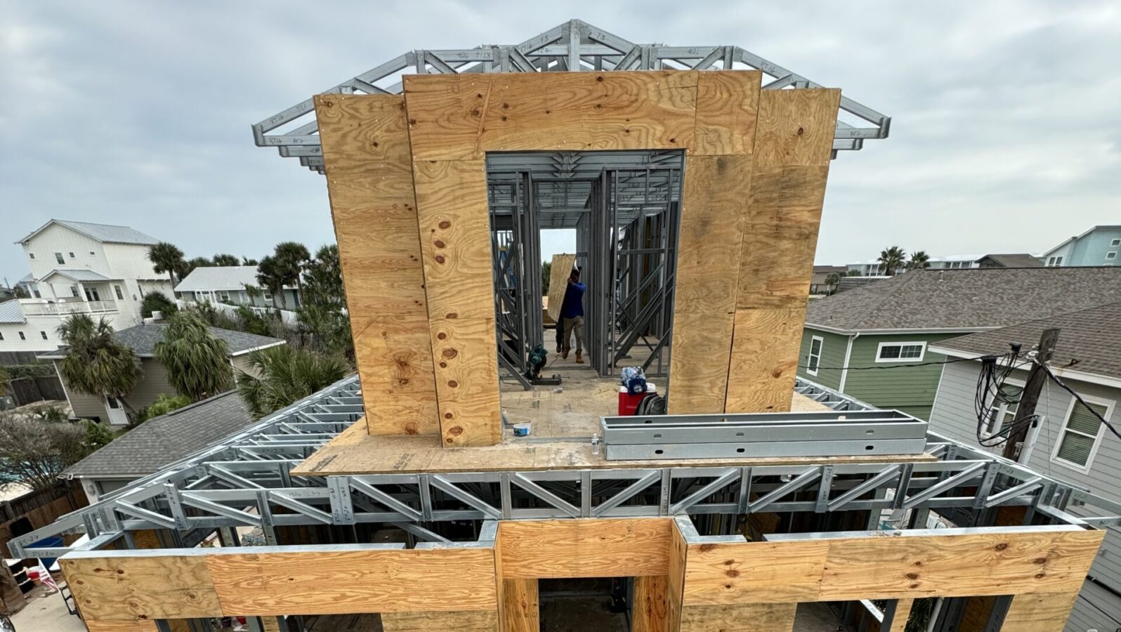 Enjoy these photos of the Lubber’s Line house plan, under construction in Port Aransas, Texas, in the United States. View the Lubber’s Line House Plan.