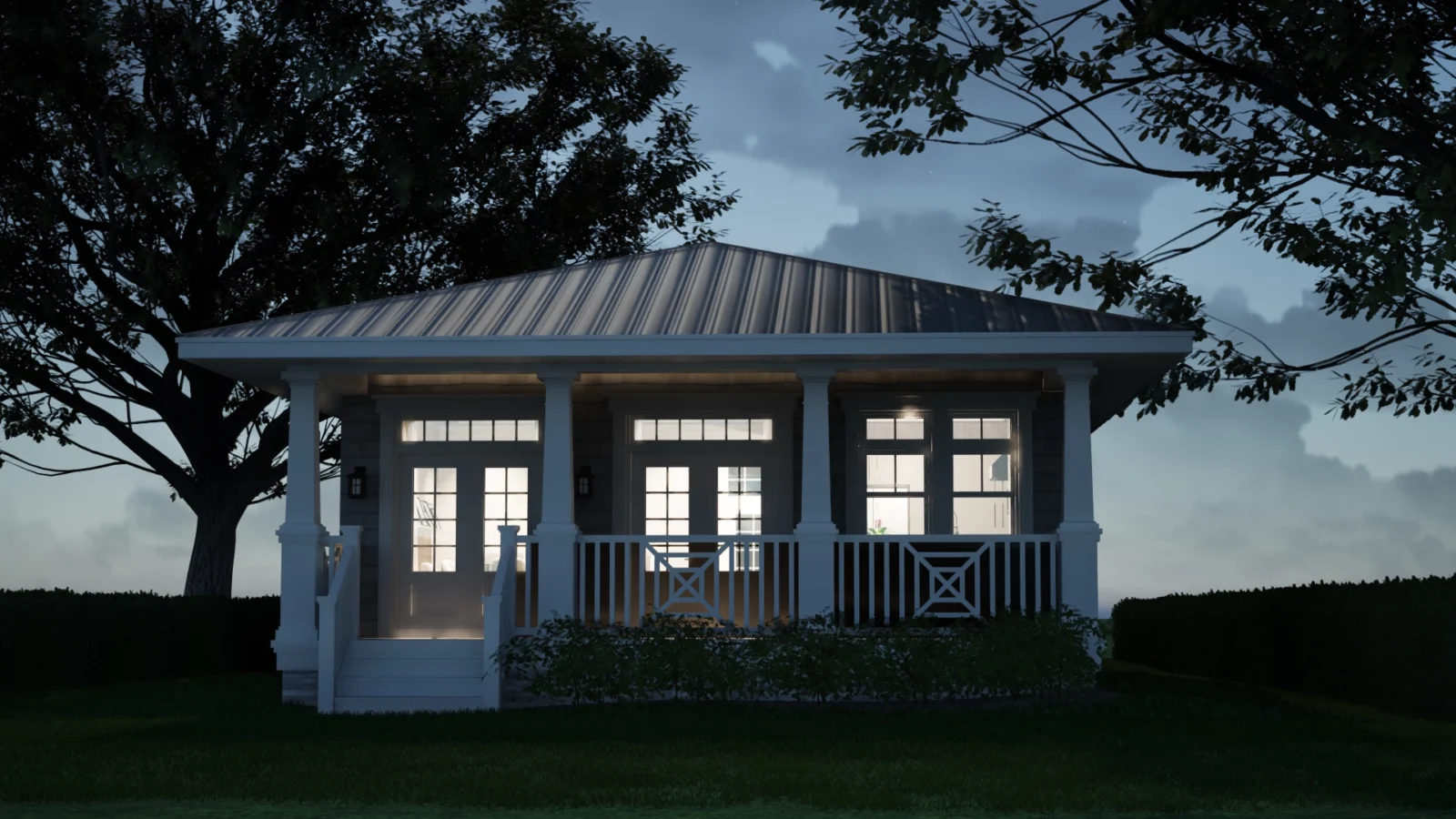 Viburnum is a two bedroom cottage with a simple shape, which makes it easy to construct. The large kitchen with an island is next to the beautiful dining and living space.