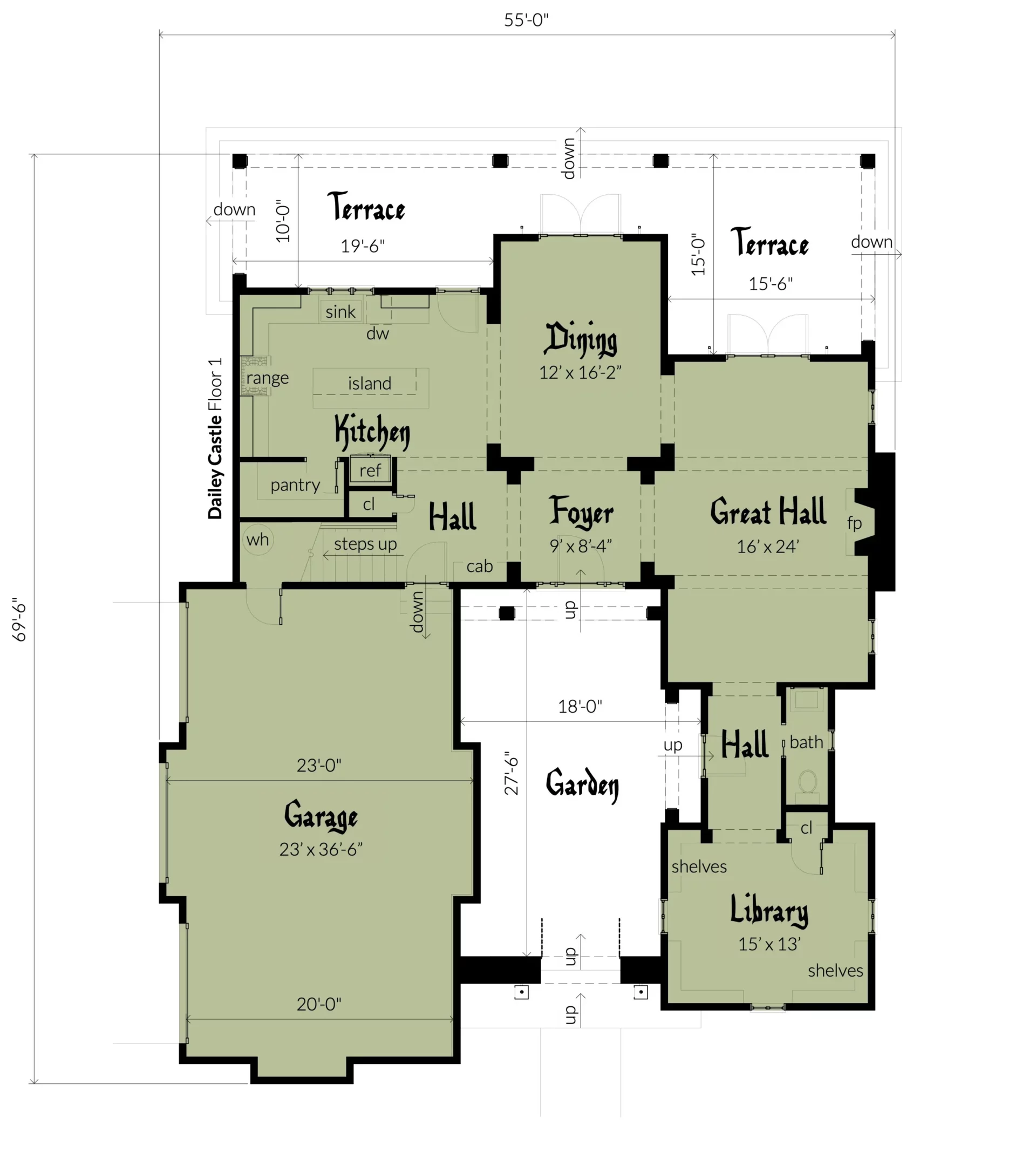 Douglas Castle. Four Bedroom House Plan with Rooftop Party Terrace.